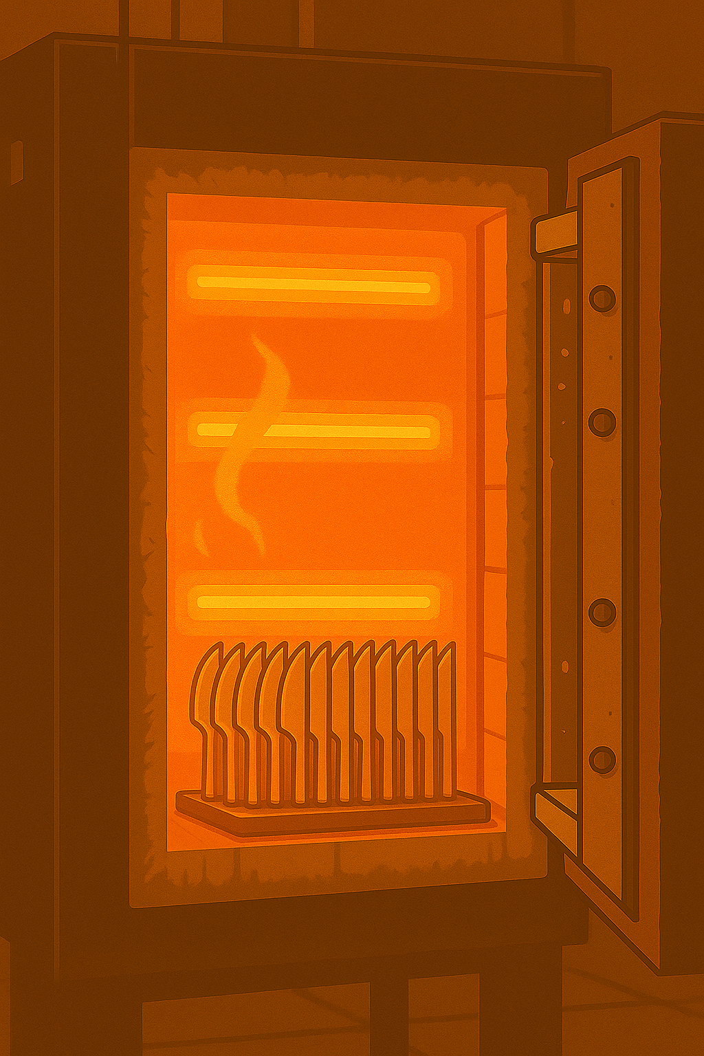 Vient ensuite l’étape du frittage, un procédé de métallurgie avancée consistant à fusionner de la poudre d’acier sous l’effet d’une température et d’une pression très élevée, sans faire fondre l’acier complètement. Chauffée à plus de 1300 °C, la poudre métallique se compacte et se lie pour former une lame dense, homogène et sans défaut interne, sa taille réduit alors de plus de 20 %. Ce procédé garantit une solidité exceptionnelle, une structure uniforme et une finesse de coupe sans égale, bien supérieure aux méthodes classiques d’usinage ou de forge.