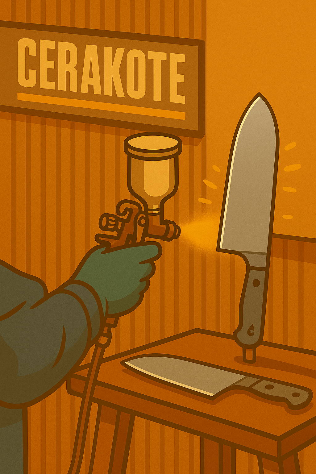 Vient ensuite la magie artisanale, où chaque couteau prend toute sa noblesse. Selon le modèle, la lame reçoit un revêtement Cerakote, une céramique appliquée à froid puis cuite, qui offre une protection exceptionnelle contre la corrosion, les rayures et l’humidité. Sa finition mate réduit également les reflets et empêche les aliments d’adhérer à la lame.